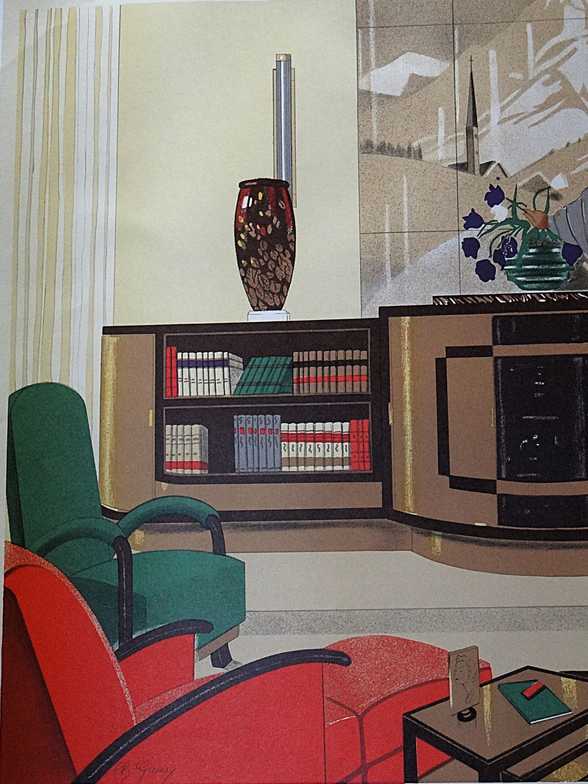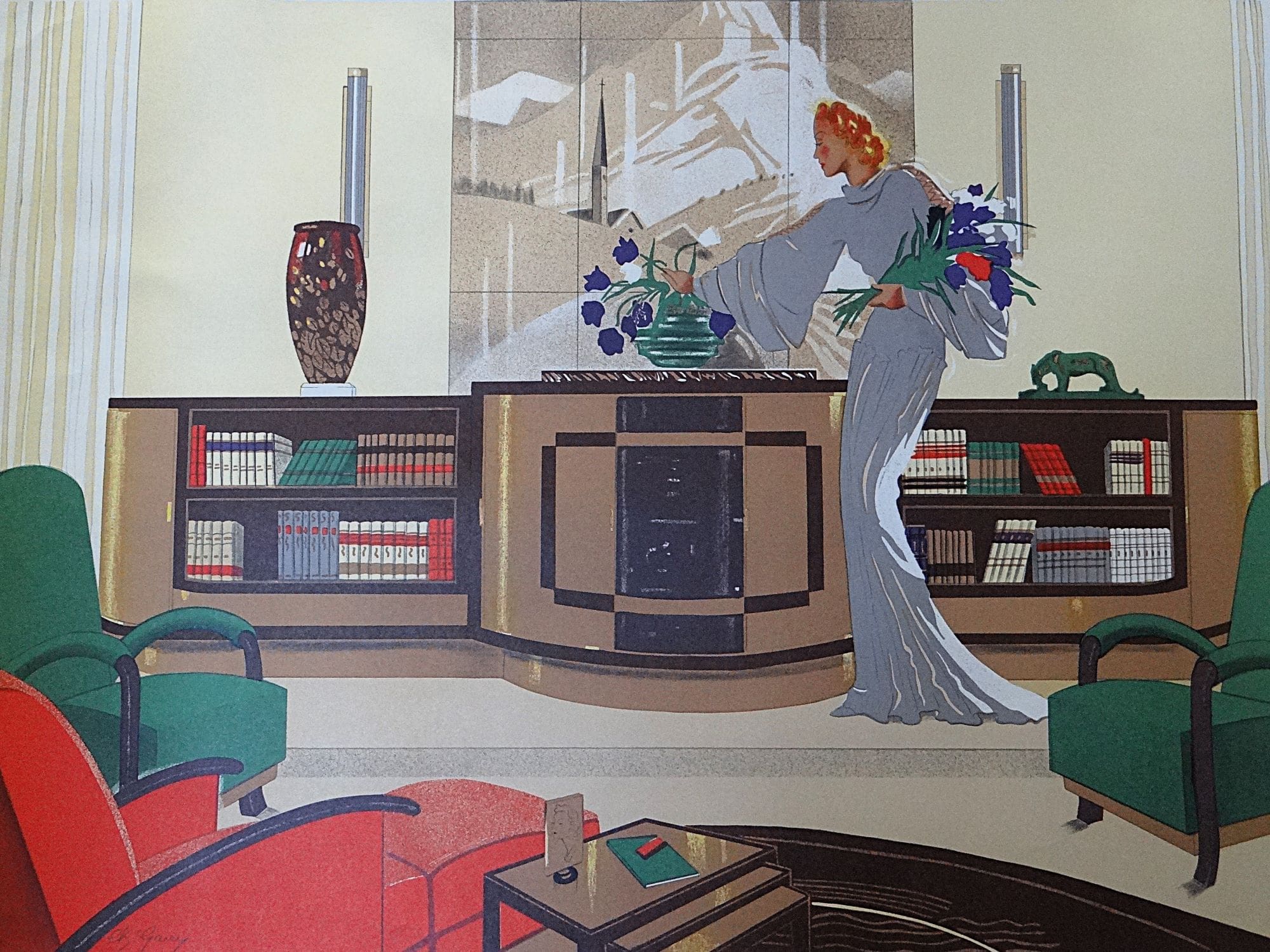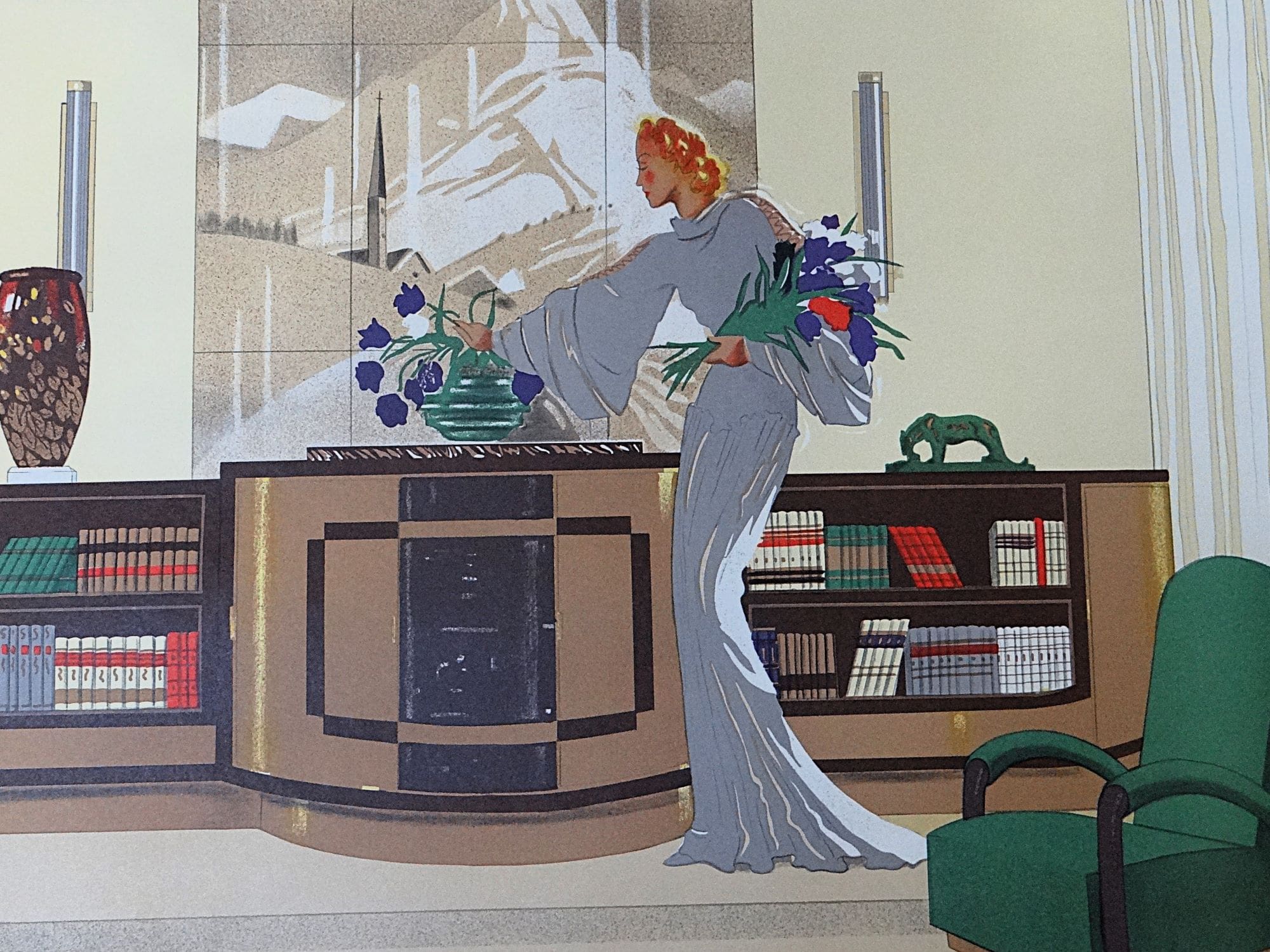 Affiche de collection créée par Charley Garry. Superbe appartement art deco avec une femme élégante. Grandes dimensions : 87,5 x 63 cm. Très bon état. Vendue non encadrée. Signature de Charley Garry imprimée. Il s’agit d’une réédition de 1987 réalisée sur papier mat. Editions Clouet. Imprimeur Atelier Desjobert Paris.