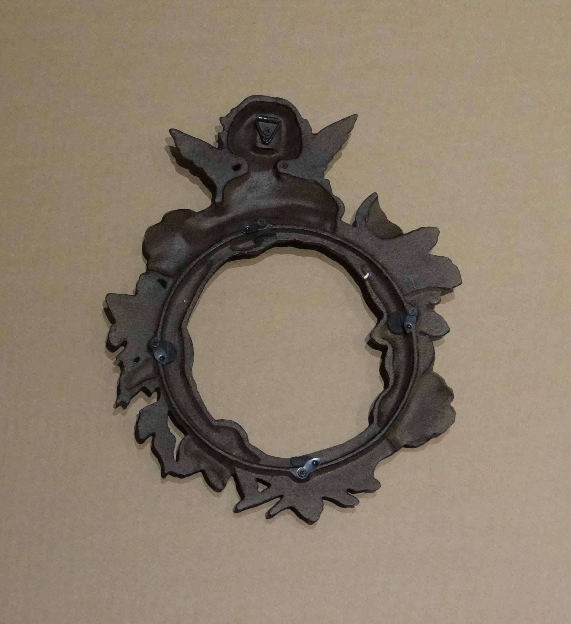 Superbe cadre mural ancien en fonte patinée, de style vintage romantique