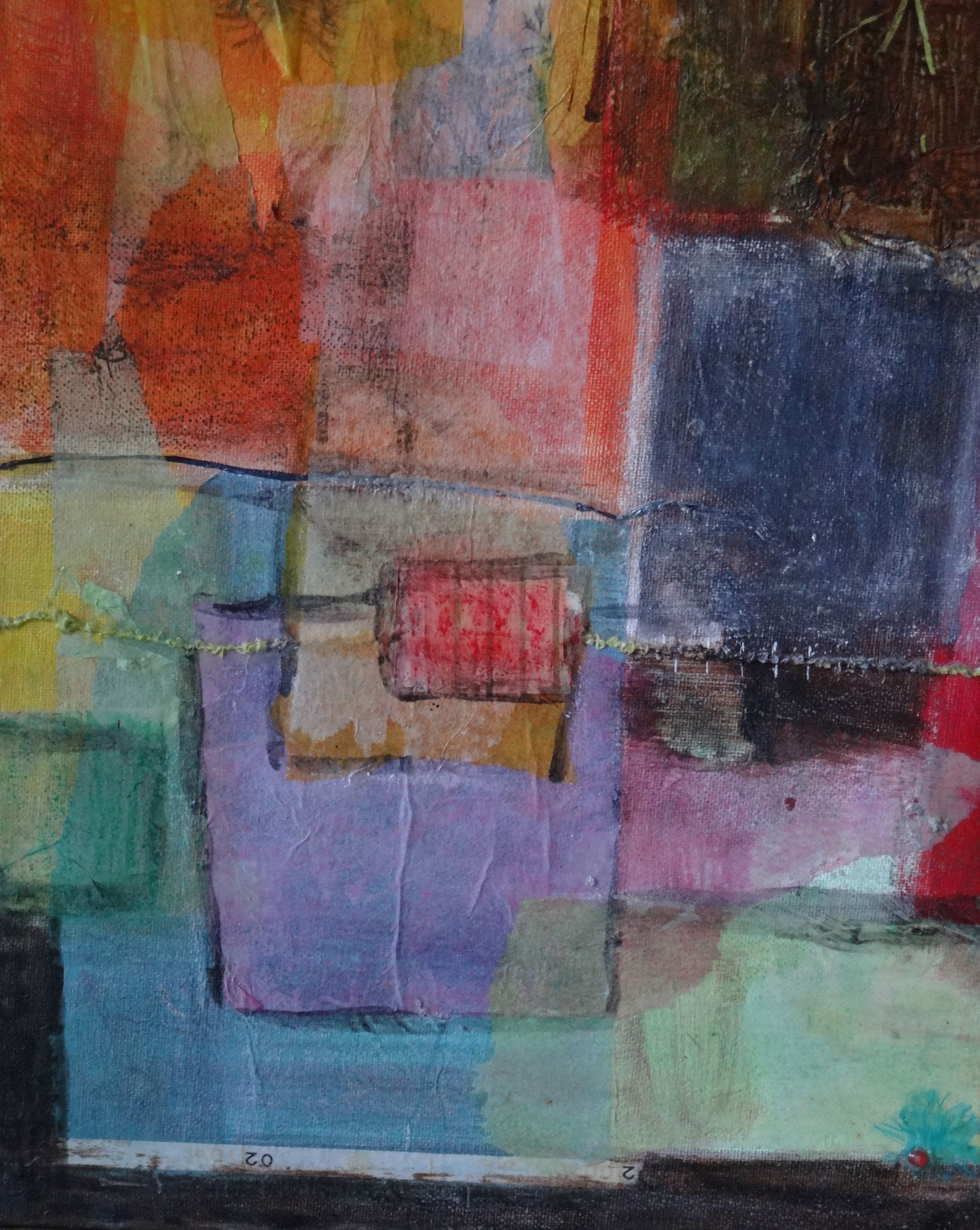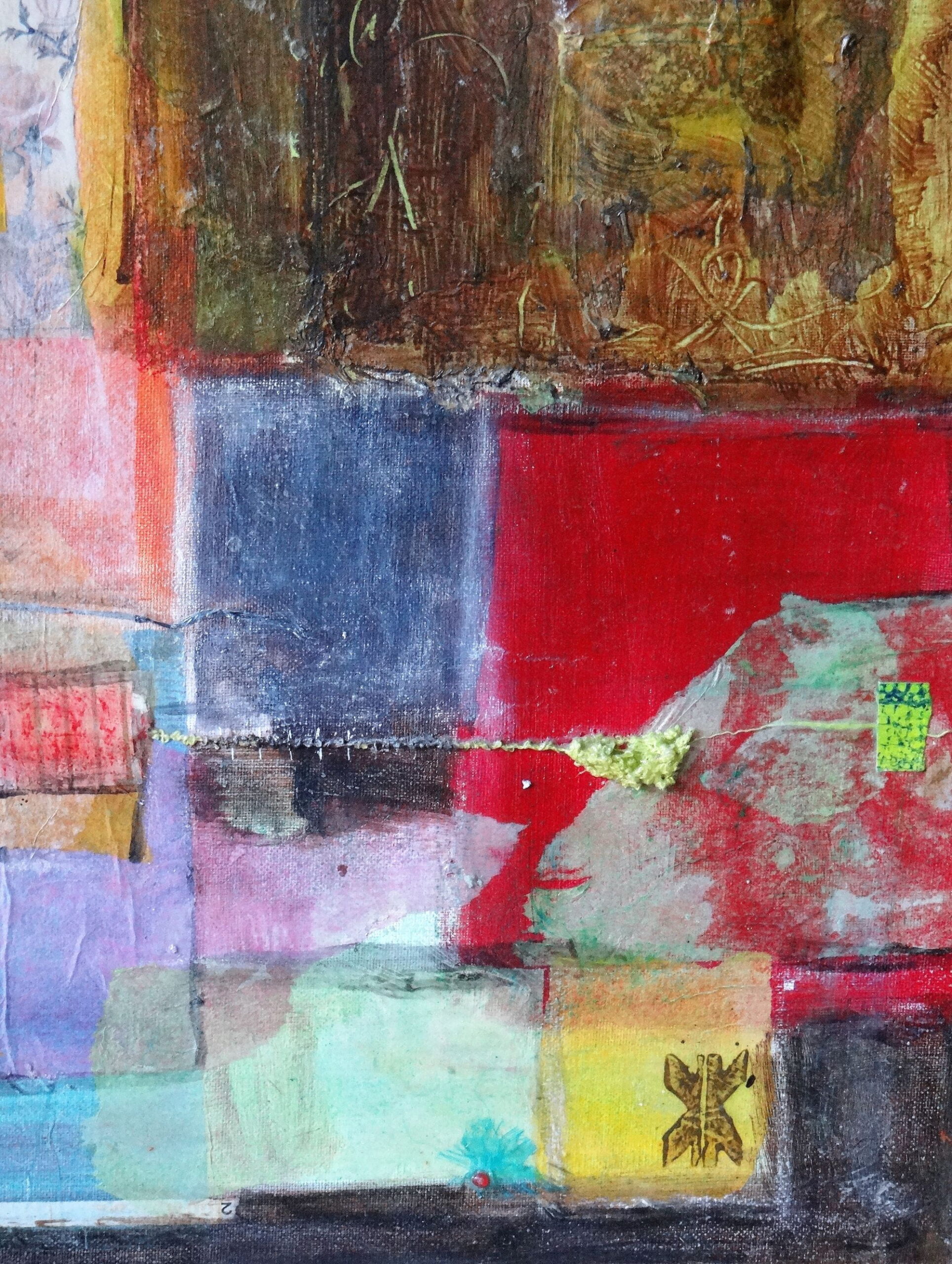 Plongez dans l’univers abstrait et sensible de Céline Boyer avec cette œuvre originale en mixed media. L’artiste marie avec talent la peinture sur toile et des collages délicats pour créer des compositions texturées, riches en matière et en émotion.