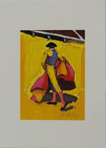 Jean-Claude Quilici, the bullfighter and his muleta, original signed lithograph, bullfighting show, bullfight in the arenas,