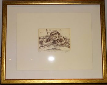 Jean-Pierre Laurent, original signed lithograph, lobster boats, trawlers in harbor, sailors, moored ships,