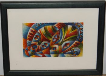 Colorful sand painting, framed abstract art, effects painting, drawing with coloured sands, pigmented powders, natural pigments,