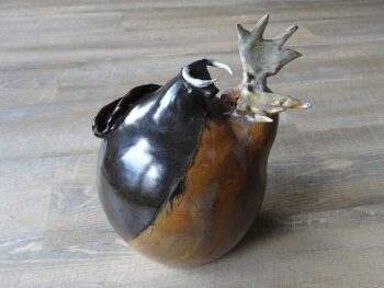 Sculpture vase by Alexandre Kostanda, fight between bull and deer, Vallauris pottery collection