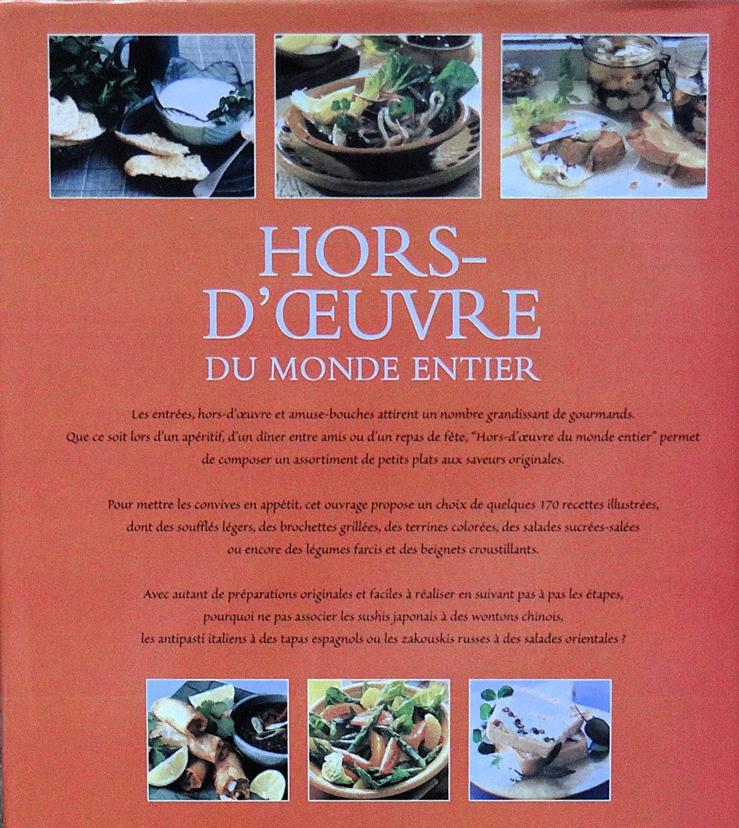 A magnificent large hardcover cookbook dedicated to appetizers, hors d’oeuvres, and finger foods from around the world.