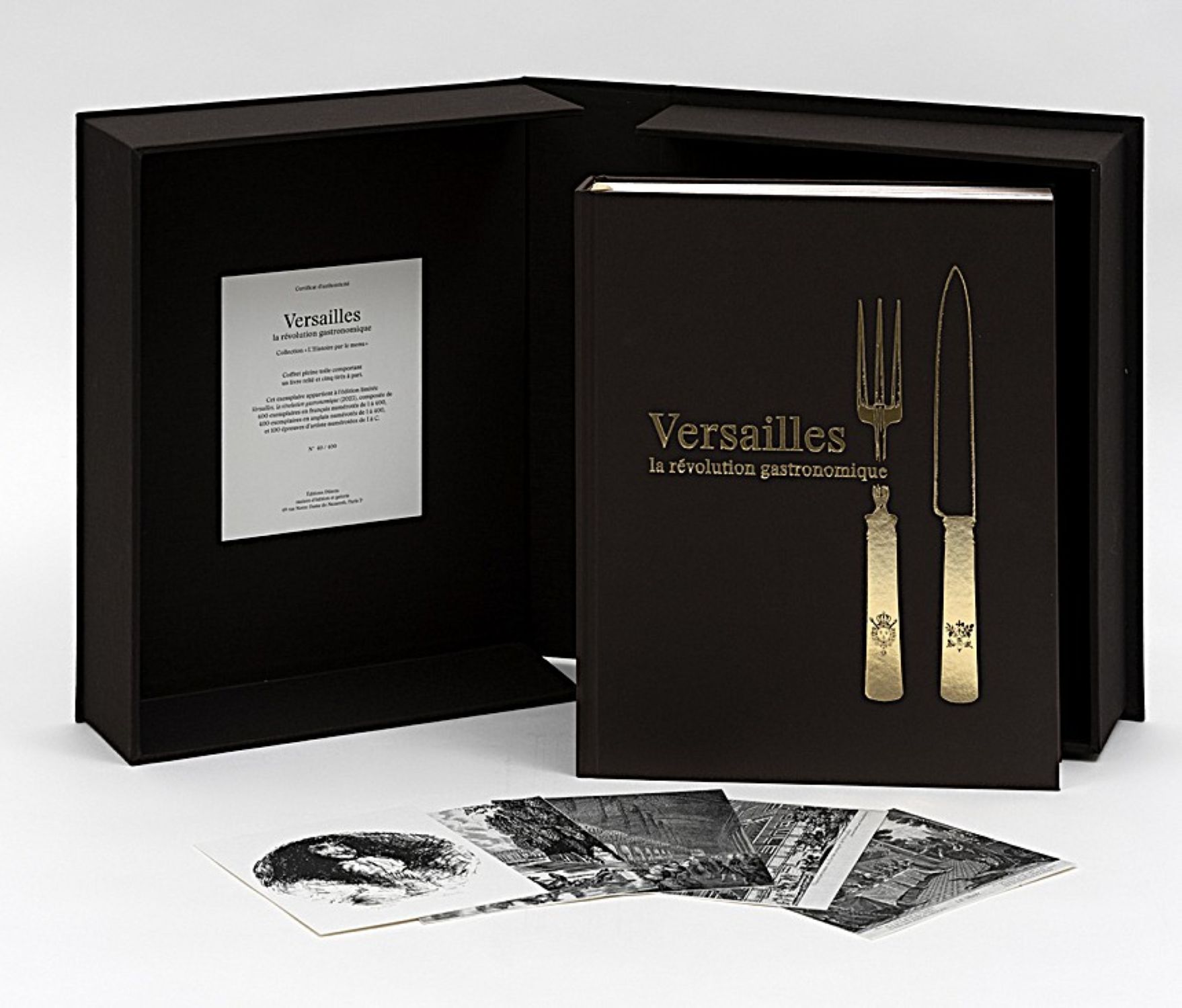 Each box set is crafted by an artisanal bookbinding workshop and covered in canvas, with the title hot-stamped. Accompanied by a certificate of authenticity, the box set includes a 400-page hardcover book and five offprints reproducing engravings, one for each century analyzed in the body of the book, the last offprint featuring a work by contemporary artist Philippe Cognée.