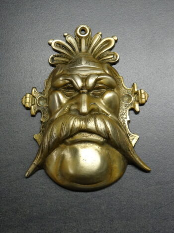 Masque de Prospérité Chinois Vintage en Laiton – Rare Gardien de Porte, 16 cm