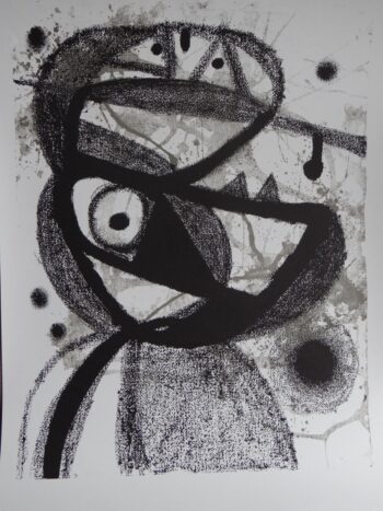 Joan Miro, impression lithographique, personnage énigmatique ou oiseau ? Catalogne, artiste espagnol, 1980,