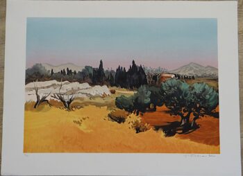 Lithographie de Pierre-Paul Hueber, Provence – Numérotée 139/180, Paysage provençal