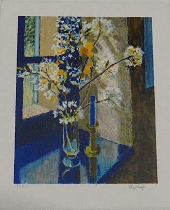 Lithographie signée de Pierre Poulain – Estampe florale Maison Bleue, édition limitée 197/250