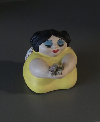 Statuette de femme en prière avec bouquet, poterie vintage mexicaine style Botero, statuette décorative, artisanat fait à la main,