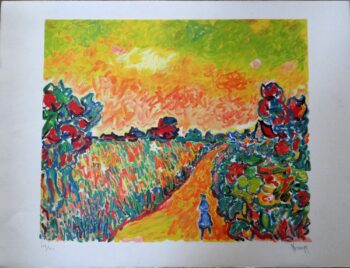 Armand Bouvier, lithographie signée, matin radieux, fauvisme, lever de soleil flamboyant, idée cadeau, peintre Français,